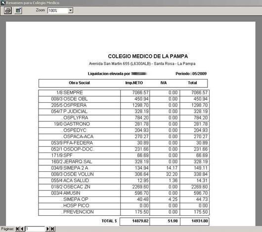 Este sistema permite realizar la carga de practicas y ordenes medicas y realizar la facturación de servicios y practicas medicas a Prepagos, Obras Sociales, A.R.T. y particulares. Es un sistema totalmente flexible y configurable que se adapta a cualquier tipo de calculo o forma de facturación.