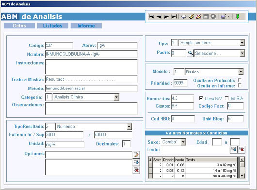 GAFLabo v 1.0 es un sistema permite llevar el control de pacientes con sus determinaciones bioquímicas, carga de pedido de análisis, facturación de los mismos, carga de resultados, emisión de informes y rendición a obras sociales.